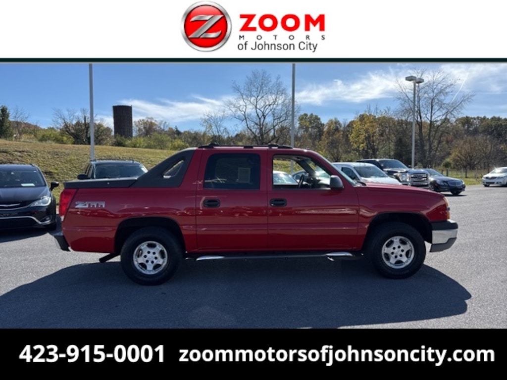 Wildfire Red 2003 Chevrolet Avalanche 1500 RWD 4-Speed Automatic with Overdrive Vortec 5.3L V8 SFI Safety Package, ONE OWNER, CLEAN CARFAX, Climate Package, Cruise Control, Brake Assist, Automatic Dual-Zone Climate Control, Driver Convenience Package, HomeLink Wireless Control System, Power Adjustable Pedals, Power Folding Heated Outside Rear-View Mirrors.