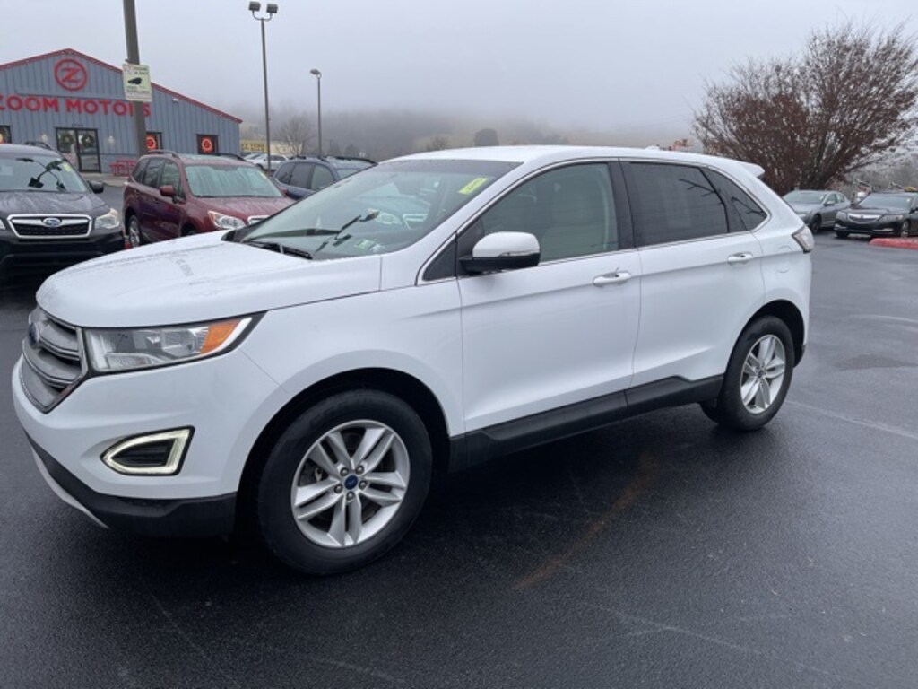 Oxford White 2016 Ford Edge SEL AWD 6-Speed Automatic EcoBoost 2.0L I4 GTDi DOHC Turbocharged VCT Safety Package, ONE OWNER, CLEAN CARFAX, All Wheel Drive/ AWD, AWD, Auto-Dimming Driver's Sideview Mirror, BLIS Blind Spot Information System, Equipment Group 201A, Leather-Trimmed Heated Bucket Seats, Power Converter 110V Outlet, Premium 9 Speaker Audio, Radio: AM/FM Stereo w/Single CD/Navigation, Remote Start System, SiriusXM Radio, SiriusXM Traffic & Travel Link, SYNC 3, Technology Package.