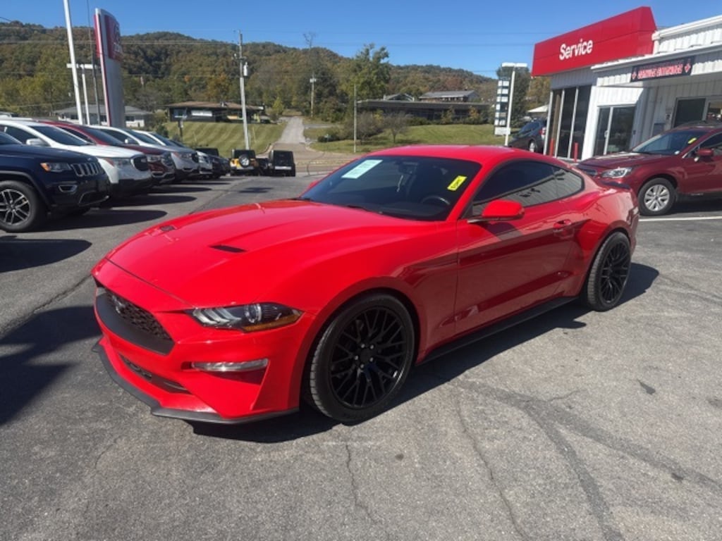 Race Red 2019 Ford Mustang EcoBoost RWD 10-Speed Automatic EcoBoost 2.3L I4 GTDi DOHC Turbocharged VCT Safety Package, Backup Camera, Keyless Entry, ONE OWNER, Bluetooth, Automatic Headlights, Sirius XM Radio, Cruise Control, Brake Assist.