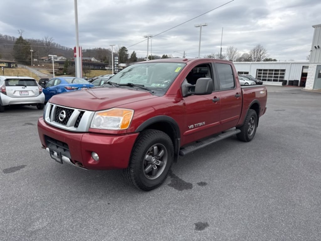 Cayenne Red Pearl 2014 Nissan Titan PRO-4X 4WD 5-Speed Automatic 5.6L 8-Cylinder SMPI DOHC Safety Package, CLEAN CARFAX, Cruise Control, Brake Assist, 4WD, 4WD, 120V Bed Outlet, Alloy wheels, Factory Applied Spray-On Bedliner, Heated Dual Front Captain's Chairs, HomeLink Universal Transceiver, In-Cabin Microfilter, Leather-Appointed Seating Surfaces, Memory Outside Mirrors, Pedals & Driver Seat, Navigation w/NissanConnect, Power Adjustable Pedals, Power driver seat, Power Heated Extendable Tow Mirrors, PRO-4X Luxury Package, PRO-4X Premium Utility Package, Radio: Rockford Fosgate Premium Audio System, Rear Overhead Console, Remote keyless entry, Steering wheel mounted audio controls, Tailgate Area Illumination, Utili-Track Channel System.