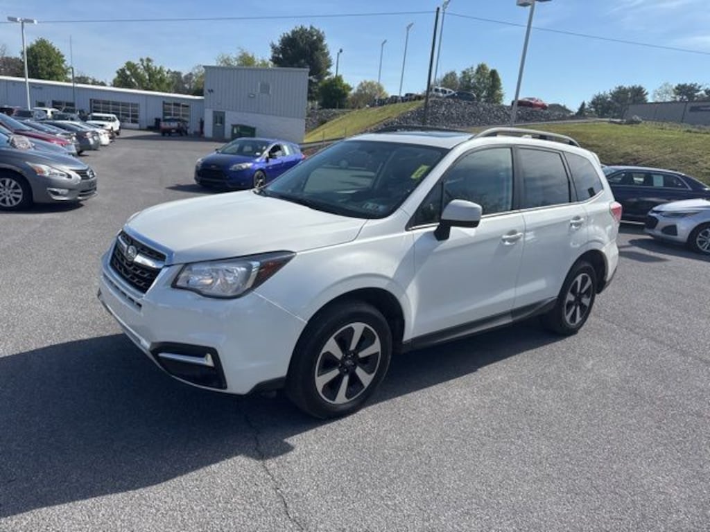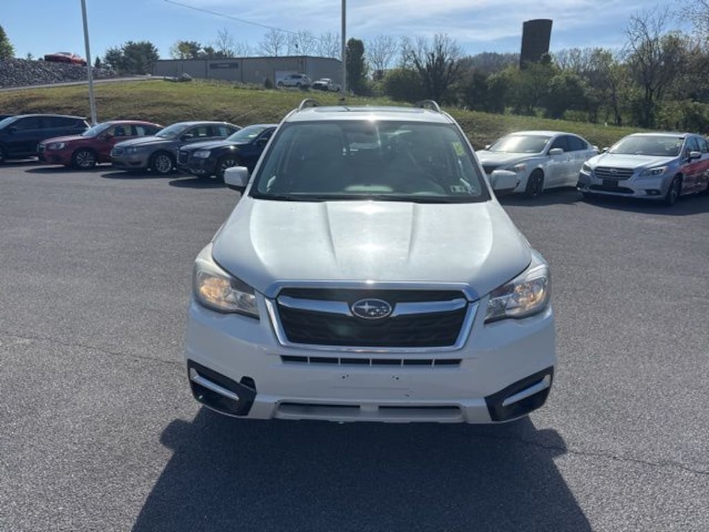 Crystal White Pearl 2018 Subaru Forester 2.5i Premium AWD Lineartronic CVT 2.5L 4-Cylinder DOHC 16V VVT Safety Package, Backup Camera, Keyless Entry, Alloy Wheels, Bluetooth, Panoramic Moonroof, Sirius XM Radio, Cruise Control, Brake Assist, All Wheel Drive/ AWD, All-Weather Package, Heated Exterior Mirrors, Heated Front Seats, Windshield Wiper De-Icer.